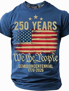 Муж. 250-летие Соединенных Штатов Футболка С короткими рукавами Футболка 3D печать Вырез под горло Рубашка Повседневные Армия Для улицы Повседневные Черный Красный Синий Лето Весна Одежда S M L XL