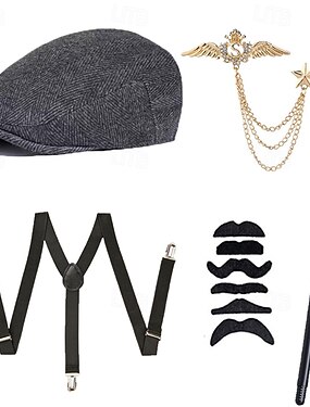 Набор Винтаж Бурные 20-е 1920-е годы Набор аксессуаров Восьмиклинка с аксессуарами Великий Гэтсби Маскарадный костюм Муж. Рождество Хэллоуин Маскарад Для вечеринок Девичник Взрослые