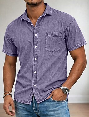Муж. Рубашка Повседневная рубашка Кнопка рубашка Рубашка из 100% хлопка с кислотной стиркой Рубашка с кислотной стиркой Светло-зеленый Лиловый Серый Светло-синий С короткими рукавами