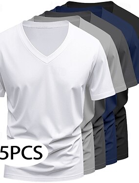 5 мужских футболок с коротким рукавом и V-образным вырезом, летние, всесезонные, однотонные, простые, повседневные, упаковка из 5 предметов, для отдыха, уличного стиля, повседневные, белые футболки