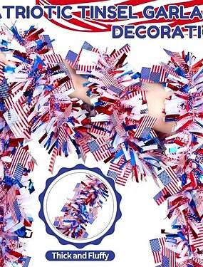 Патриотическая гирлянда из мишуры длиной 66 футов с американскими флагами, толстая &Пушистая красно-бело-голубая металлическая гирлянда для Дня независимости 4 июля, украшения ко Дню памяти, товары