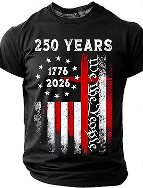 4 июля 2026 года 250-й день памяти Мужская Патриотичный Патриот 3D печать Ветеран Футболка с круглым вырезом короткий рукав На улицу повседневный спорт