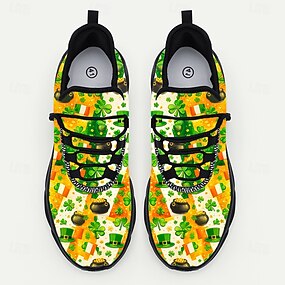 Мужские кроссовки ко Дню Святого Патрика – зеленый с цветочным рисунком и деталями в виде клевера, идеально подходят для праздничных торжеств.