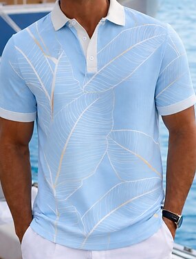 Муж. Лист Гавайские рубашки поло С короткими рукавами Футболки поло Рубашки с воротником На каждый день Одежда для спорта и отдыха На каждый день Одежда для отпуска 3D печать Пуговицы Дышащая сетка
