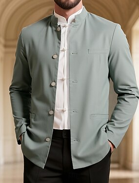 Мужчины Пиджак Официальные Винтаж Шинуазери (китайский стиль) Весна Все сезоны Полиэфир Сплошной цвет Классический На каждый день Однобортный крой Блейзер Черный Бордовый Темно-синий