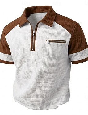 Муж. Рубашки-поло из вафельной ткани Поло Повседневные на открытом воздухе Молния Четверть молния С короткими рукавами Мода Классический Контрастных цветов Клетчатый Молния Легкость