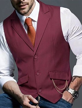 Мужчины Жилет Повседневные Бизнес Мода Деловые Все сезоны Карман TR Мода Однотонный Однобортный крой Острый Узкий крой Черный Бордовый Темно-синий Жилет