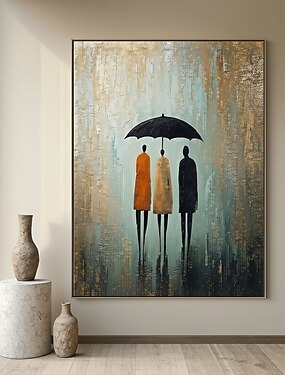 Картина ручной работы «Ходящие под зонтиком», холст, постер, настенное панно с черным зонтиком, люди с зонтиком, холст, настенное искусство, декор для дома