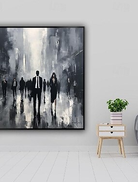 Большие абстрактные черные фигуры ручной работы, картина маслом на холсте, ручная роспись, минималистская картина людей, городская живопись в стиле бохо, картина для гостиной, настенное искусство,