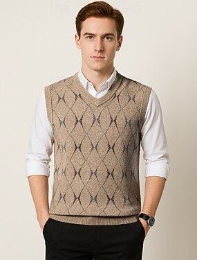 Мужчины Свитер жилет Вязать Геометрический принт V-образный вырез Элегантный повседневный стиль Официальные Отпуск Одежда Весна Осень Винный Темно-зеленый S M L