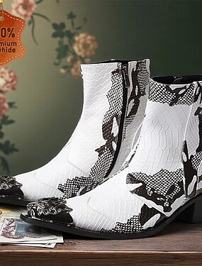 Белые мужские ботинки в стиле вестерн с цветочным узором и шнуровкой — эффектная обувь для модных мужчин, идеально подходящая для вечеринок и выступлений.