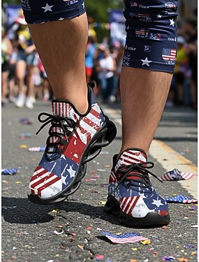 Мужские патриотические кроссовки с флагом США – легкие, дышащие, на шнуровке, идеально подходят для бега в День независимости, парадов и прогулок на свежем воздухе. &повседневная одежда