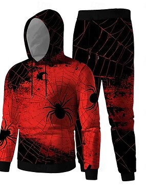 Мужские Паучки 2шт 3D Свитшот Комплекты Спортивный Костюм Худи Свитшот Долгий Рукав Долгие штаны С капюшоном Обычная Ежедневная Улица Атлетик 3D Печать Весна Осень Зима Красный
