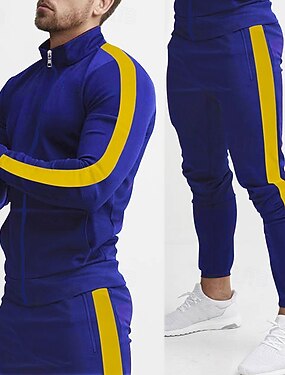 Муж. Толстовка Спортивный костюм Комплект одежды Воротник-стойка на открытом воздухе Повседневные Спорт Кулиска Застегнуться Карман Контрастных цветов Желтый Красный Темно синий Полиэстер