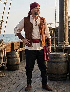 Набор Ретро Средневековый Эпоха возрождения Брюки Головные уборы Жилет с аксессуарами Длинные рукава Пираты Круглый вырез Маскарадный костюм Муж. Хэллоуин Карнавал Ярмарка Возрождения РИЖД Взрослые