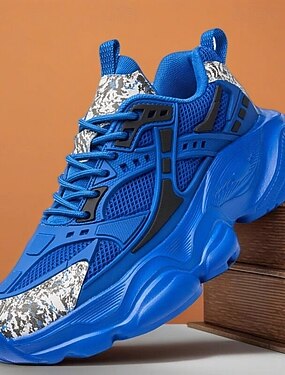Мужские спортивные кроссовки на массивной подошве — синие, с металлическими акцентами, с дышащей сеткой для активного образа жизни и активного отдыха