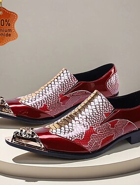 Мужские красно-белые лоферы из змеиной кожи — модный дизайн с металлическими деталями, идеально подходят для празднования Рождества и Нового года