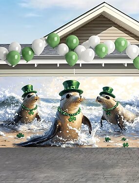 День Св.Патрика гобелен Крышка гаражной двери Большое Подвесное Эльф Животный принт Симпатичные Стиль 3D Вечеринка На открытом воздухе Праздник Фоны для съемки Ярд (0,9 м) Домашний декор