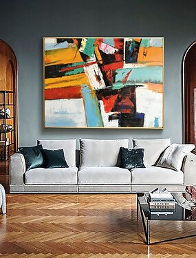 ручная картина маслом холст настенное искусство украшение абстрактный цветной блок для домашнего декора свернутая бескаркасная нерастянутая картина