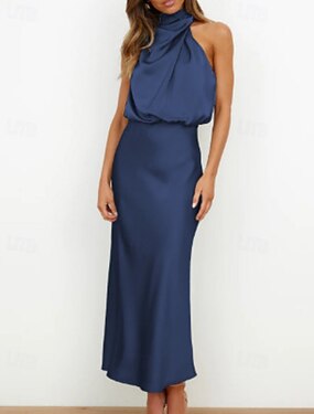С пышной юбкой До щиколотки Выпускные платья Вечернее платье С пышной юбкой Торжественное платье Элегантный стиль 1950-е года Цветовые блоки Без рукавов Вырез под горло Выпускной Свадебный гость Сатин