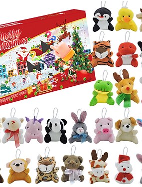 Рождественский плюшевый календарь обратного отсчета - 2025 рождество 24 дня мини адвент-календарь с 24 животными плюшевыми игрушками - 24 дня адвент-календарь обратного отсчета рождественские подарки
