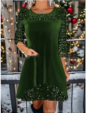 Рождественское женское мини-платье из бархата A-силуэта повседневное обычное однотонное с простым круглым вырезом вино королевский синий зеленый весна осень зима