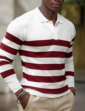 Муж. геометрический Горизонтальные полосы Рубашки-поло из вафельной ткани Длинный рукав Футболки поло Рубашки с воротником На каждый день На каждый день Пуговицы Весна Осень Зима Синий Красный Зеленый