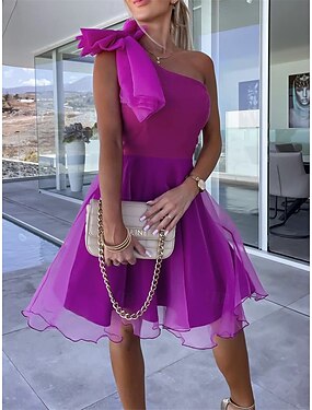 Жен. Мини-платье Повседневное платье Коктейльные платья Свадебное платье для гостей Шифоновые платья Уличный стиль На каждый день Отпуск Для улицы Праздники Стандартный Без рукавов На одно плечо