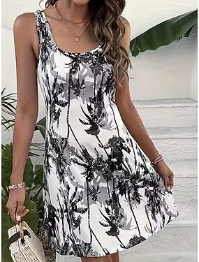 Жен. Мини-платье Платье A-силуэта Платье-комбинация Платье с открытыми плечами Отпуск На каждый день Пляж На выход Стандартная посадка Цветочный принт Графика Геометрический принт Без рукавов