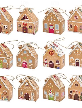 24 коробки для рождественских угощений, конфеты, пряничный домик, мини-коробка для рождественской вечеринки, небольшой картонный подарочный контейнер для рождественских угощений, печенья, сладостей,