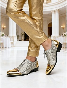 Мужские классические туфли с золотистым зеркальным покрытием и металлическими деталями, роскошная свадебная обувь, идеально подходящая для жениха и гостей свадьбы.