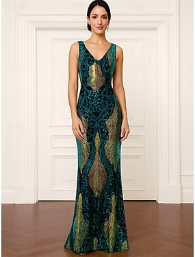 Русалка труба длиной до пола платье для гостей на свадьбе формальные платья вечернее платье платье для матери невесты без рукавов V-образный вырез элегантное винтажное блестящее и сияющее с блестками