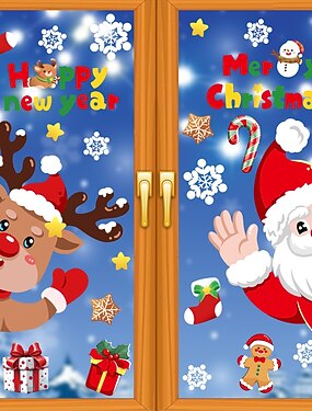 Рождественские наклейки на окна, рождественские наклейки на стену, праздничные украшения, Санта-Клаус, снеговик, олень, снежинка, многоразовые статические наклейки, неклеящиеся наклейки на стекло,