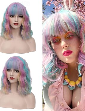 14 коротких радужных вьющихся париков для женщин и девочек из термостойкого волокна, парики для косплея на Хэллоуин, повседневные шапочки для карнавала, фестиваля, вечеринки