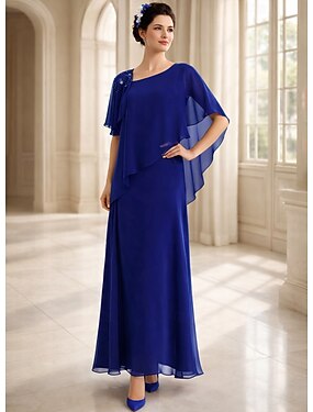 Из двух частей Футляр До щиколотки Свадебное платье для гостей Платье для матери невесты Без рукавов Круглый вырез Элегантный стиль Свадебный гость Свадебные прием Церковь Эластичная ткань с