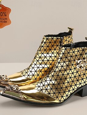 Мужские позолоченные ковбойские сапоги с блестящей отделкой и элегантным дизайном — идеально подходят для ночных мероприятий, особых случаев и для следования модным тенденциям