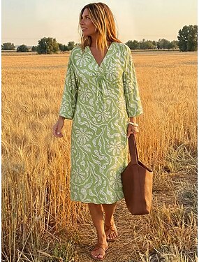 Жен. Платье средней длины Сарафан Платье A-силуэта Отпуск На каждый день Богемный Пляж Для вечеринок Свободное облегание Графика Абстракция Длинный рукав V-образный вырез Черный Оранжевый Зеленый