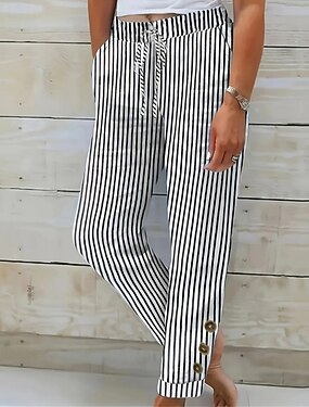 Жен. Искусственный хлопок и лен Брюки На каждый день По щиколотку Средняя талия Графика Полоски Кулиска Боковые карманы Воздухопроницаемость Удобный Слабоэластичная выходные