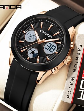 SANDA Мужчины электронные часы На открытом воздухе Мода Повседневные часы Наручные часы Светящийся будильник С тремя часовыми поясами Календарь ТПУ Часы