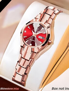 Женские кварцевые часы — это модный, повседневный и элегантный аксессуар, украшенный стразами и оснащенный люминесцентным циферблатом с двумя календарями, что делает их лучшим подарком для женщин.