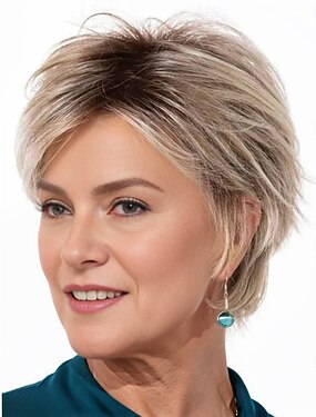 короткий светлый парик пикси с темными корнями – синтетические волосы, термостойкие для повседневной носки, косплея &вечеринки