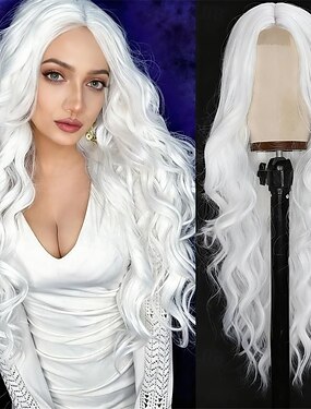 Длинные белые вьющиеся парики для женщин с челкой, синтетический парик с пробором посередине в стиле королевы-принцессы для карнавальной вечеринки