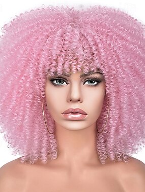 Карнавальный парик 2026 Розовый Афро Афро Квинки Короткие Синтетический фестивальный парик Вторник на масляной неделе Парад Волосы для косплей-костюма для Женский