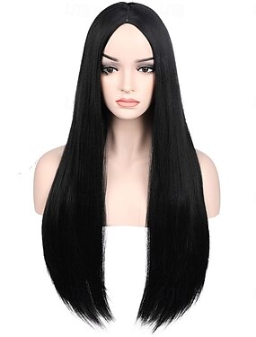 Парики из искусственных волос Вытянутые Естественный прямой Средняя часть Машинное плетение Парик 24 дюймы Черный Искусственные волосы 24 дюймовый Жен. Мягкость Удобный Черный