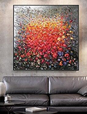 картина маслом ручная роспись стены искусство абстрактное растение цветочные красные цветы украшение дома декор растянутая рамка готова повесить