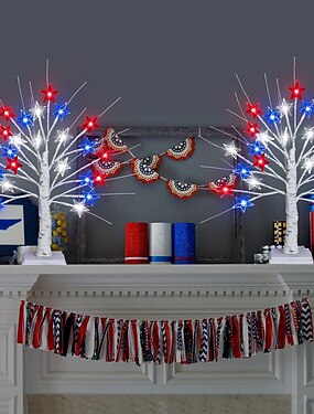Светильник в виде пентаграммы на березу, посвященный 250-летию независимости США, красно-бело-синий, 45 см/17,72 дюйма, на батарейках AAA, для использования в спальне, гостиной, столовой, у изголовья