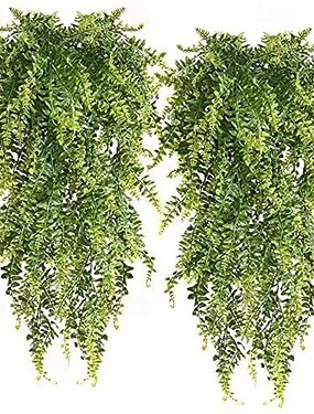 Набор из 4 искусственных висячих растений «Бостон», искусственный папоротник, плющ, искусственная зелень, устойчивая к ультрафиолетовому излучению, искусственные листья лозы, ротанг для наружного и