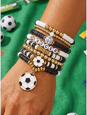 Женский набор многослойных браслетов в виде спортивных мячей из сплава и смешанных материалов, украшения в виде мячей разных форм, идеально подходящие для футбольных матчей, поддержки команды, повседневной носки и игрового стиля.