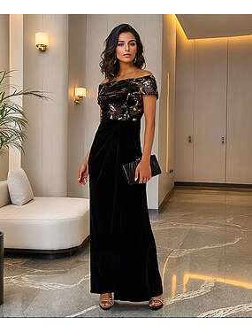 Русалка Футляр В пол Вышивка бисером Вечернее платье Платье матери невесты Выпускные платья Вечернее платье С пышной юбкой Торжественное платье Элегантный стиль Блестящая Стиль знаменитостей