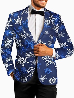 Мужской рождественский уродливый пиджак для вечеринки, однобортный однобортный пиджак с принтом снежинок, на одной пуговице для ужина, выпускного вечера, праздника, больших размеров, Рождества 2023